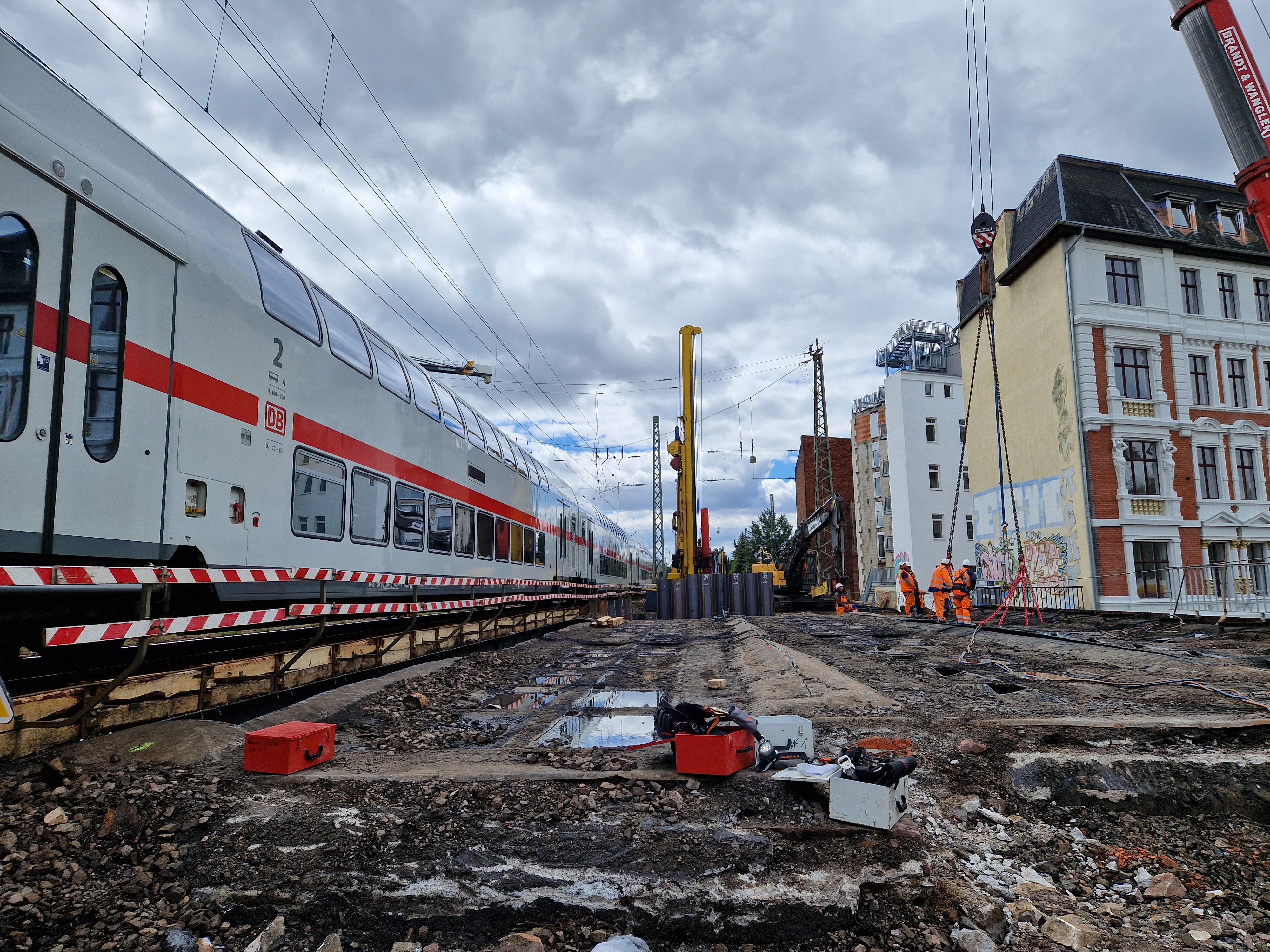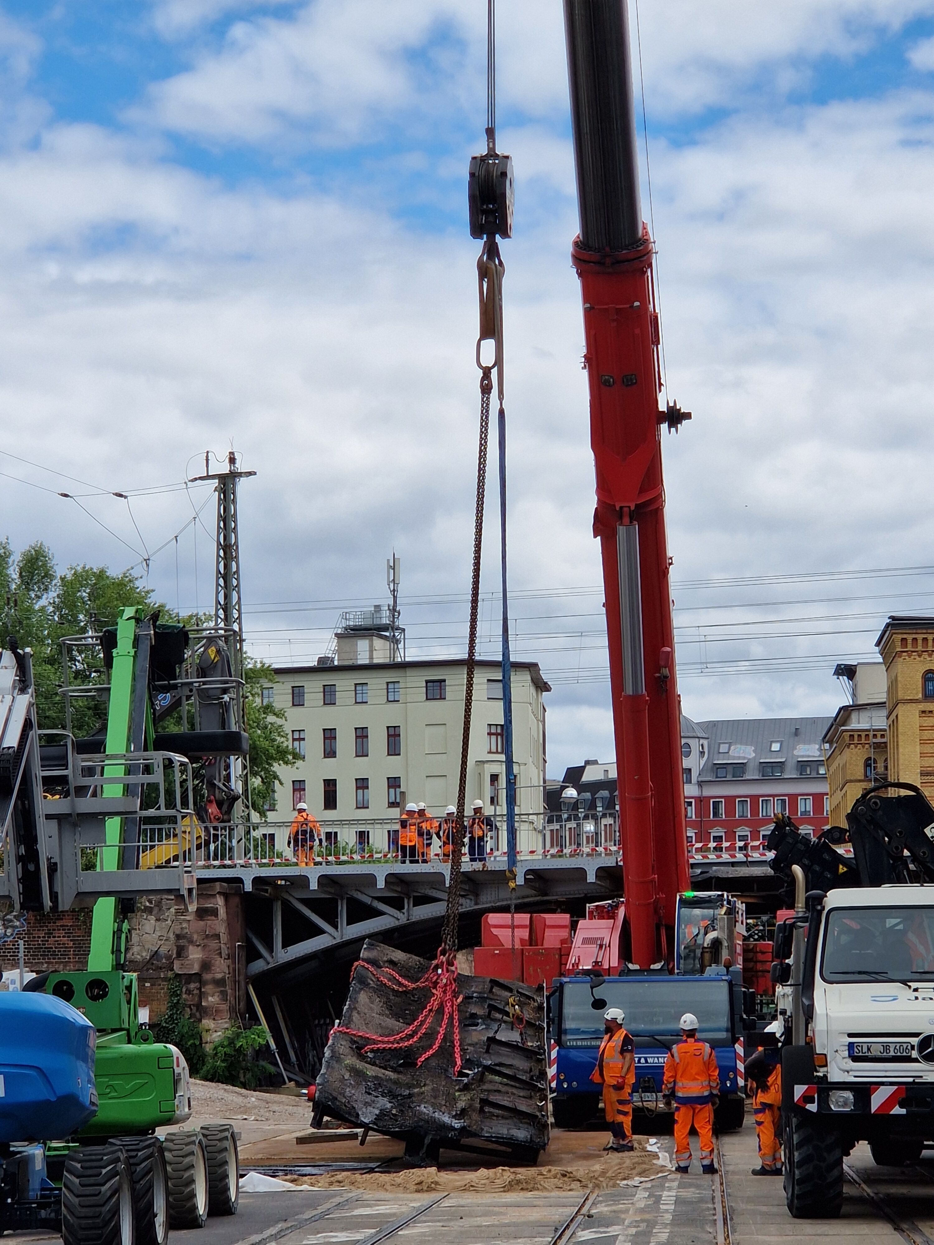 Blick auf die Baustelle – Rückbau der Eisenbahnüberführung Hallische Straße